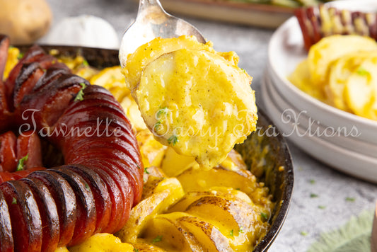 Cheesy Potatoes with Hasselback Smoked Sausage